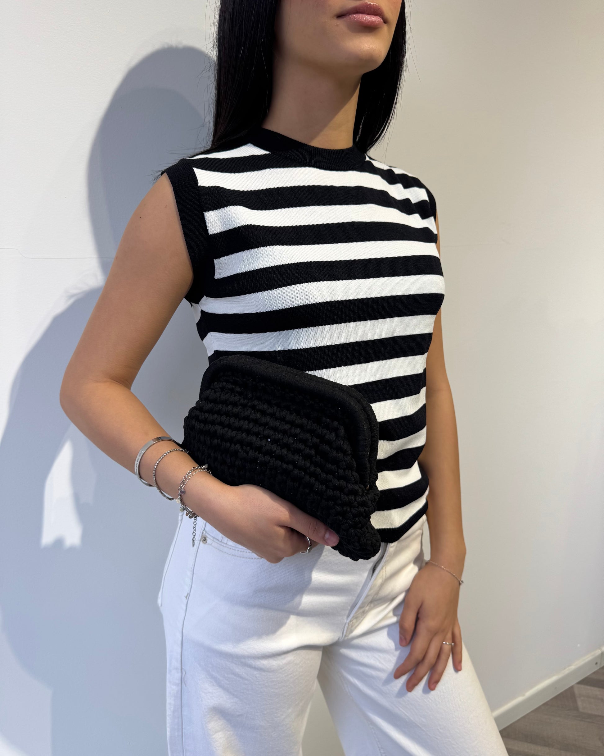 Clutch realizzata a uncinetto color nero, vivace e originale, perfetta per dare luce anche agli outfit più semplici.