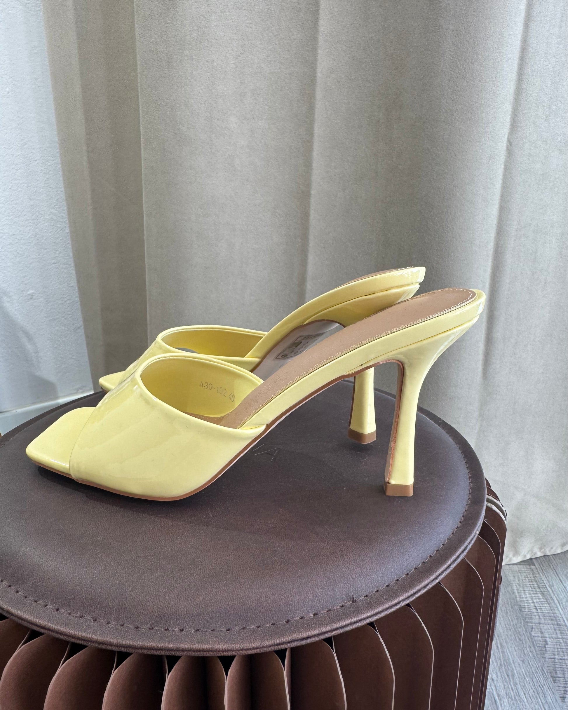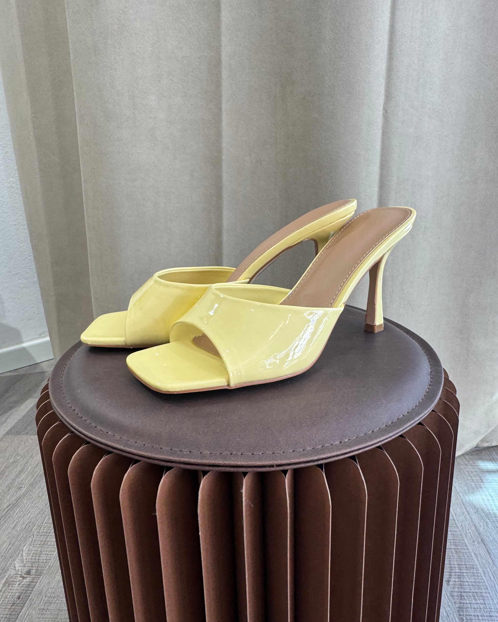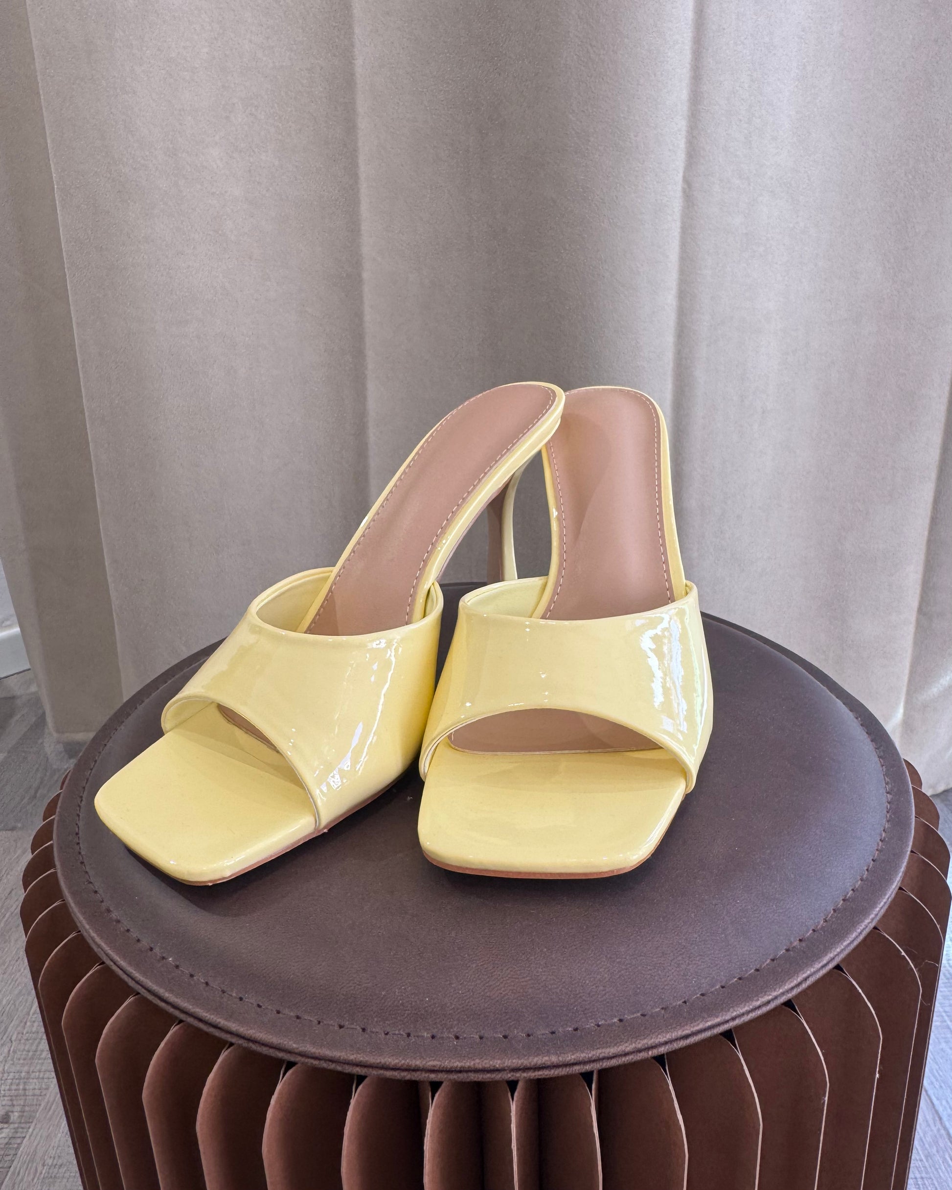 sandali in vernice con tacco medio, eleganti e femminili, perfette per completare il look con un tocco raffinato ma facile da indossare.