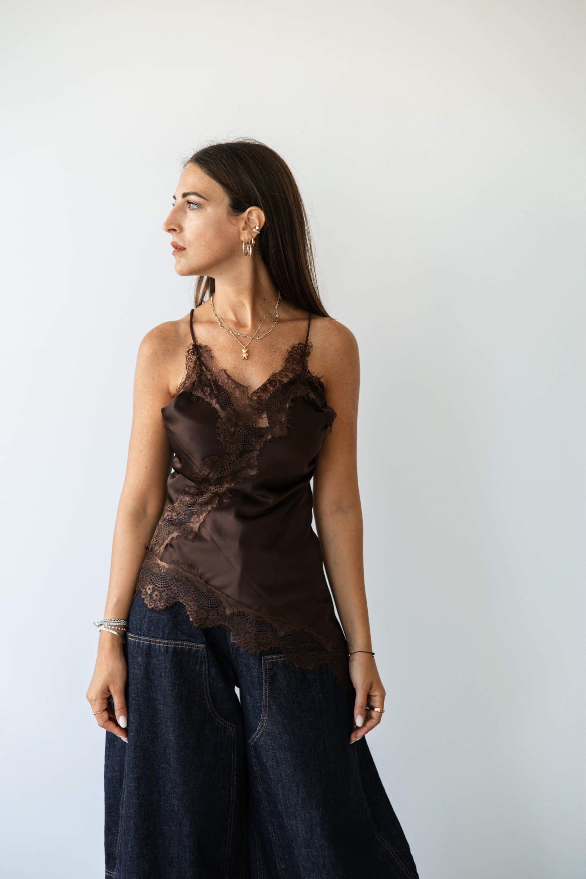 Top Satin Pizzo Asimmetrico